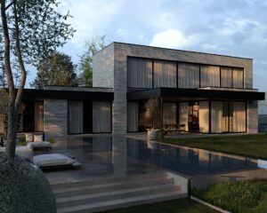 Opdrachtgever: Architect Frank Gruwez Wat wij (V‑Render) hebben gedaan Doel van het project De architect wilde de villa op een realistische manier voorstellen aan de bouwheer.