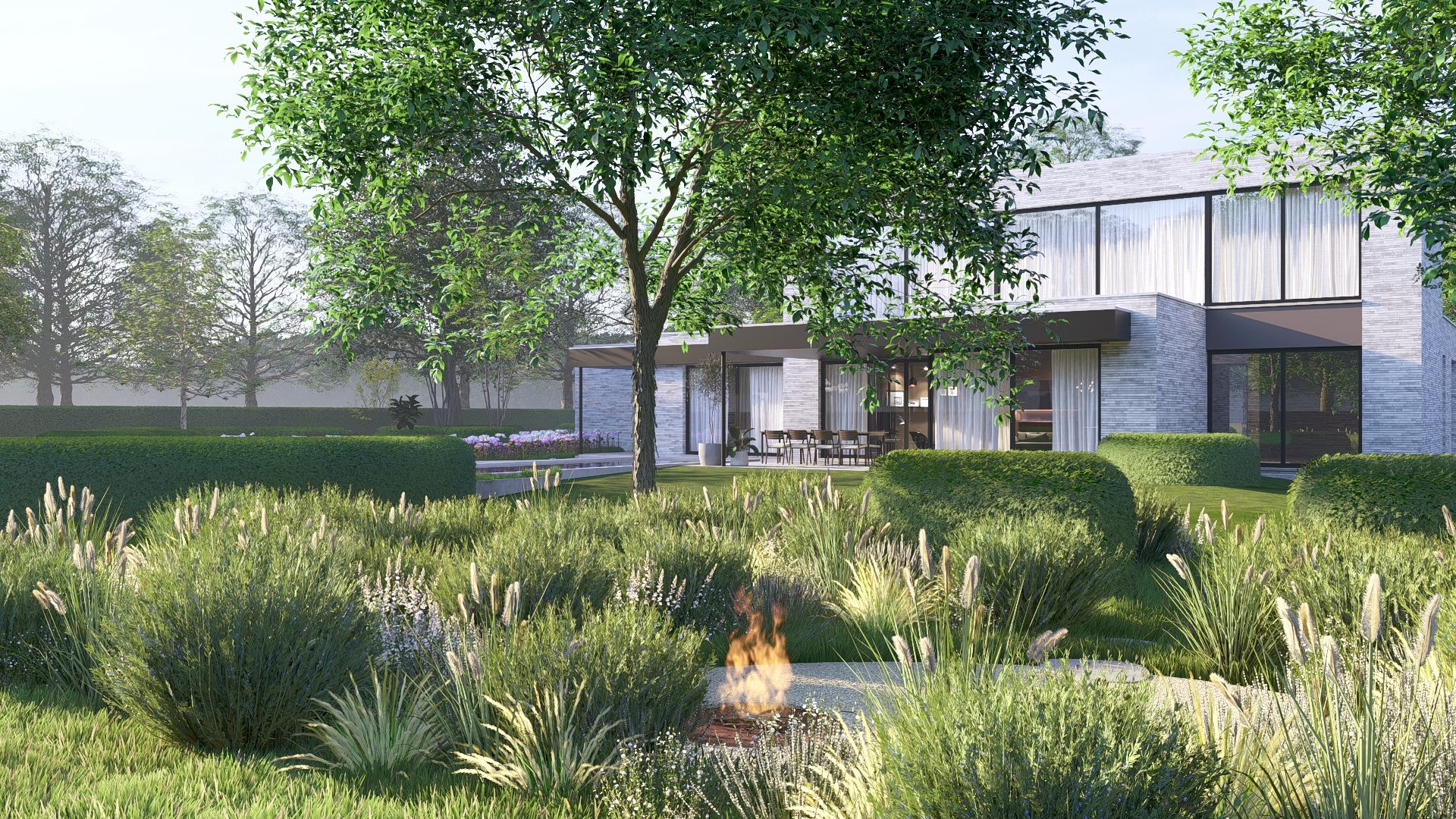 De visualisatie moest de architectuur en de tuinbeleving samenbrengen in één overtuigend beeld. Zo kreeg de opdrachtgever meteen een realistisch idee van hoe de buitenruimte tot leven komt.