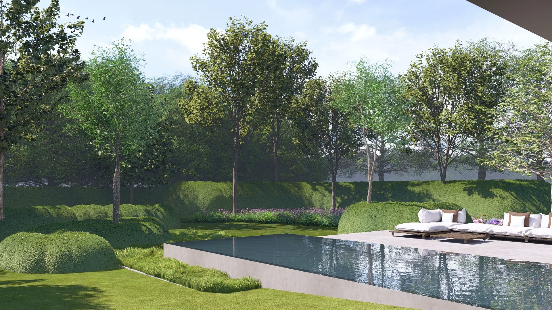 Het eindresultaat is een sfeervolle render die perfect de balans toont tussen architectuur, natuur en ontspanning. Een overtuigend hulpmiddel voor de tuinarchitect om haar visie helder te presenteren aan de klant.